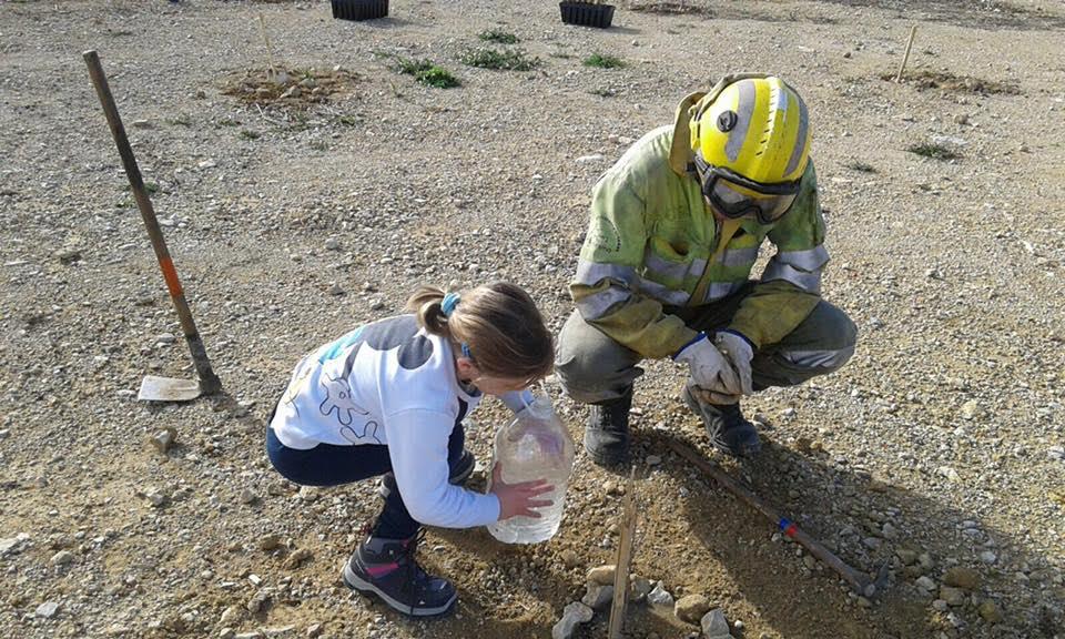 Los 22 niños de la escuela de Tírig han plantado, con motivo del Día del Árbol, cerca de 100 plantones en el parque de la Rabosseta. Los alumnos del centro educativo de la localidad han participado en esta actividad lúdica y medioambiental acompañados por sus profesores .