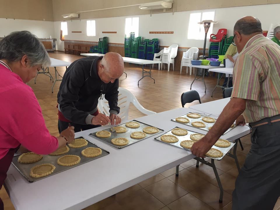 En torno a 30 voluntarios y voluntarias trabajan para elaborar esta pasta tradicional. Una vez allanada se le da la tradicional forma, se realiza el borde y se pincha. Luego se lleva al horno.