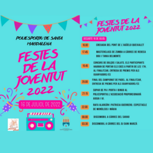 La Asociación Juvenil ‘Pont de l´Agüelo Queixalet’ ya la tiene todo listo para la celebración, el próximo sábado, 16 de julio, de las Fiestas de la Juventud, que, tras dos años de pandemia, vuelven con más fuerza que nunca.