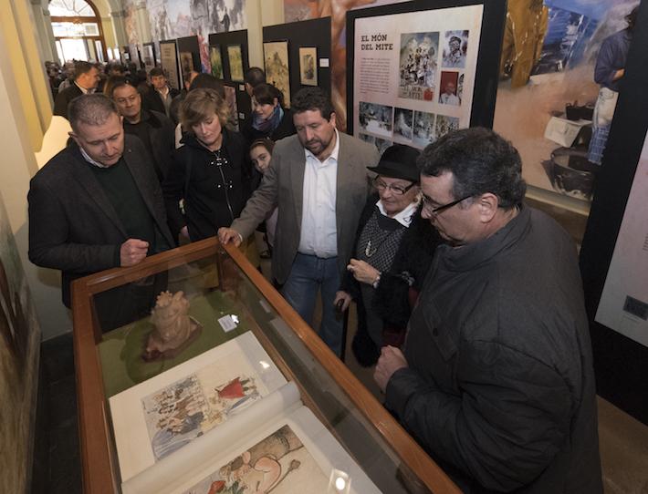 El hall del Palacio Provincial de la Diputación se ha convertido desde hoy, y hasta que terminen las fiestas de la Magdalena el próximo 26 de marzo, en el escenario de un “pequeño pero sentido homenaje a Castellón, su mitología, cultura y, en definitiva, al orgullo de pertenencia a una tierra única”. Así lo ha asegurado el presidente del Gobierno Provincial, Javier Moliner, durante la inauguración de la exposición 'Tomba-Tossals: mitologia castellonenca' organizada por la Colla del Rei Barbut en conmemoración del 80 aniversario del fallecimiento del escritor castellonense Pasqual i Tirado.
