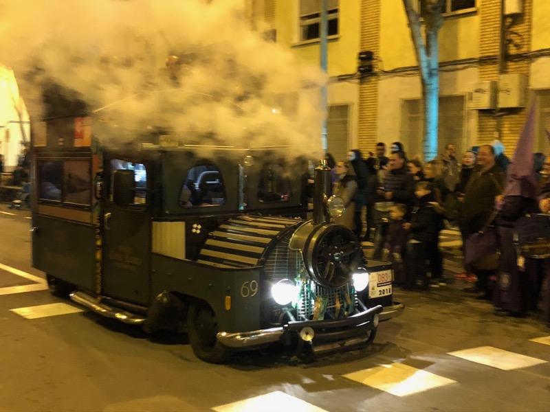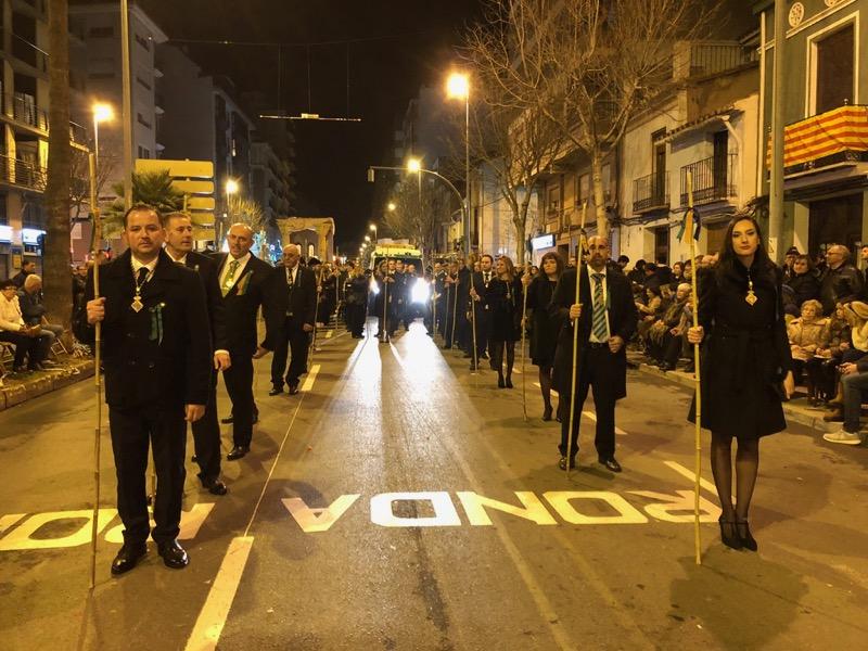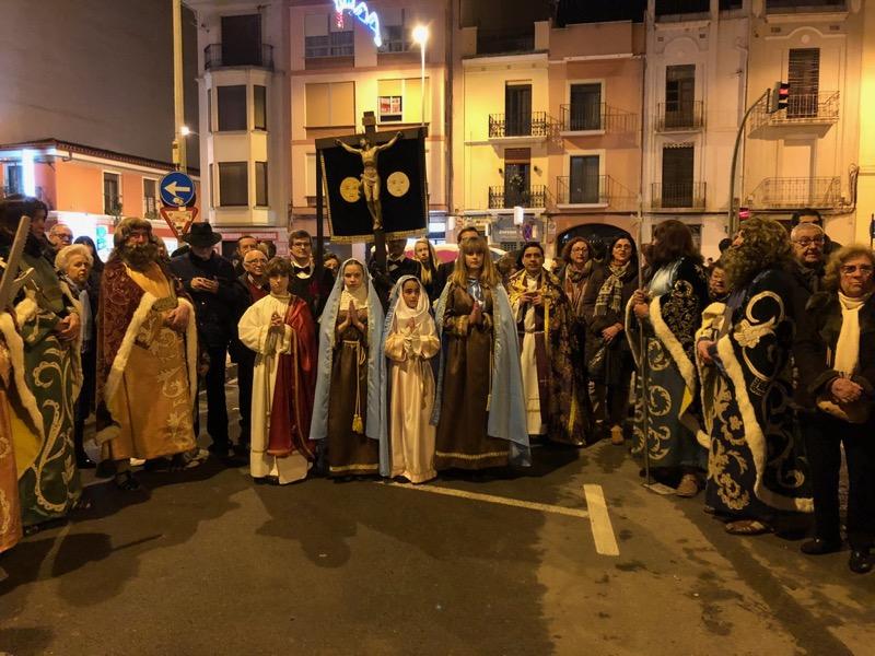 Mientras pasaban los carros engalanados, la Procesión Penitencial, con los cofrades y la iglesia, acompañados por la Germandat dels Cavallers formaba y esperaban en el Forn del Pla.