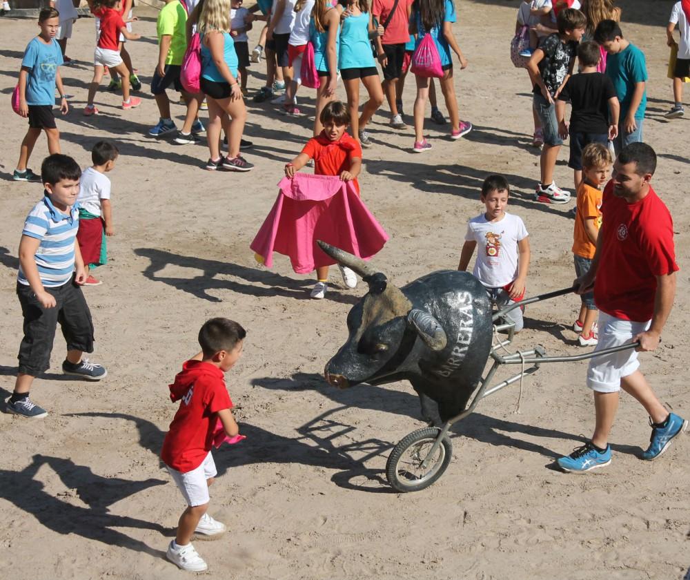 Tras dos días de actos religiosos y musicales en honor a los patrones de Almenara, esta tarde se han retomado los actos taurinos con la exhibición esta tarde de dos ejemplares de la ganadería de El Montecillo patrocinados por el Ayuntamiento de Almenara, uno de los cuales está previsto que se embole esta noche. Previamente los más pequeños han podido disfrutar de un encierro infantil a cargo de la Peña El Piló.