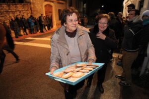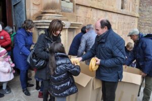 Alcalde y concejales reparten los rollos bendecidos entre los vecinos de les Useres