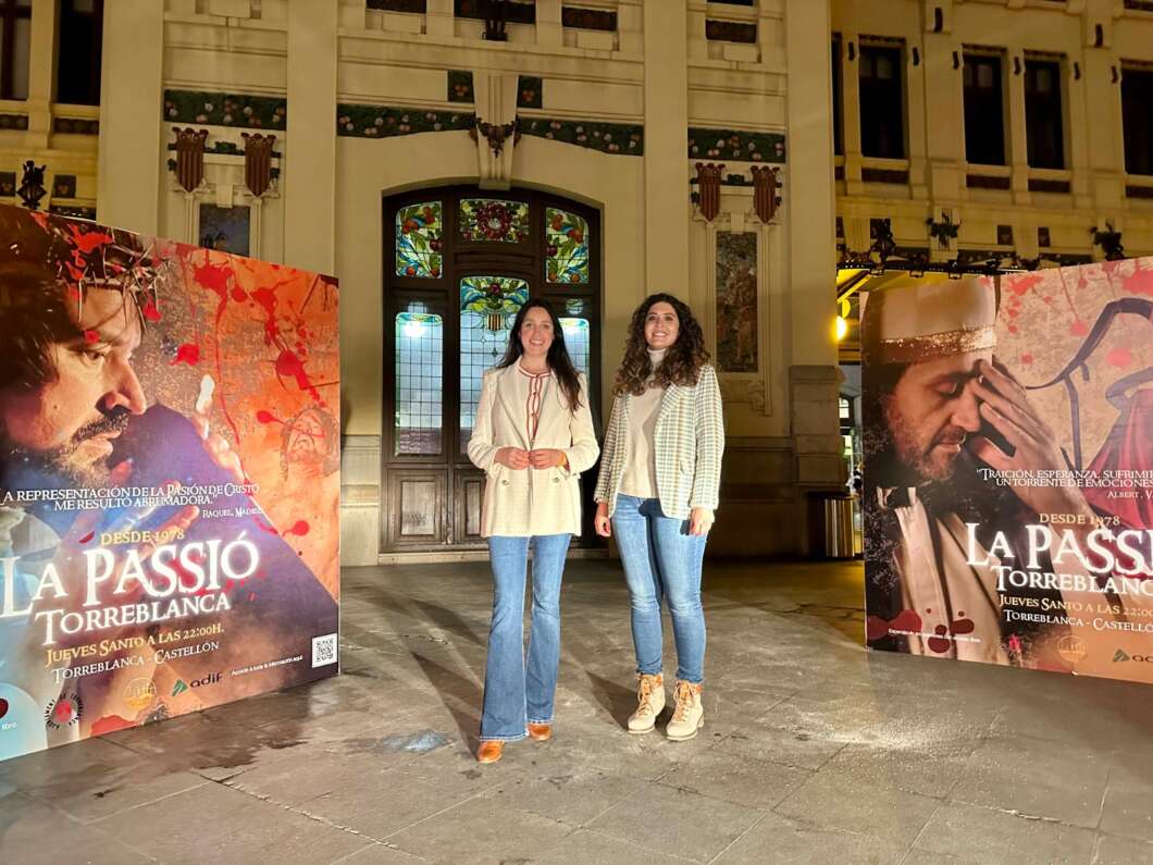 De hecho, ayer mismo, la alcaldesa de Torreblanca, Tania Agut, y la concejala de Turismo, Gema Edo, estuvieron en la estación de tren de Valencia, donde a la entrada hay dos cubos promocionales de la Passió aprovechando que diariamente pasan por allí miles de personas. Es una de las iniciativas impulsadas por el equipo de Gobierno, que se ha aliado con Adif para multiplicar la repercusión de un evento que ya ha alcanzado una importante notoriedad más allá de la provincia de Castellón.