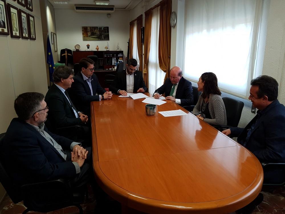 El alcalde, Samuel Falomir, y el presidente del Grupo Torrecid, Federico Michavila, han firmado esta mañana el convenio de colaboración