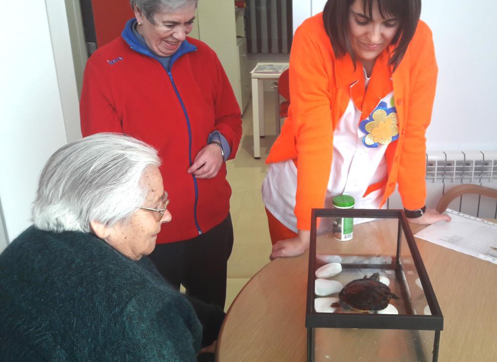 De esta forma, el centro ha asignado a los mayores distintas tareas relacionadas con el cuidado de la tortuga (cambiar el agua, alimentarla, sacarla a paseo, etc, etc.) con el objetivo de potenciar las relaciones entre ellos, aumentar su estado de ánimo disminuyendo la sensación de soledad, y sacarlos de sus actividades rutinaria, entre otros aspectos.