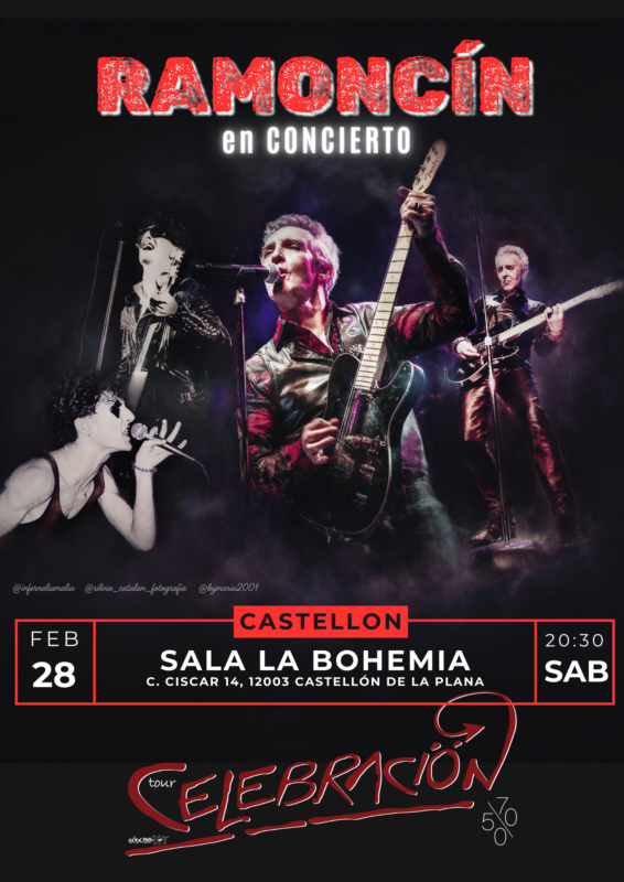 Ramoncín torna als escenaris per presentar la seua esperada gira "Tour CELEBRACIÓN 50/70", amb la qual commemora un doble aniversari: els seus 70 anys i els 50 anys de carrera musical. Tota una fita que confirma al cantant com una llegenda viva de la música rock del nostre país. Aquest tour, iniciat el 2025, ha recorregut bona part de les ciutats de la geografia peninsular i ha fet parada en alguns dels principals festivals espanyols com Inverfest i Suite Festival. La Bohemia s'uneix, així, a la selecta llista de sales on Ramoncín "celebrarà" amb el seu directe enèrgic, potent i sense artificis.