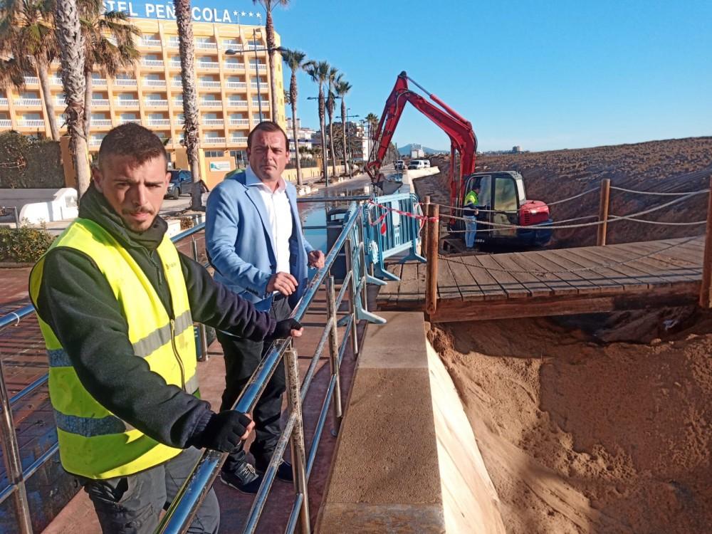 Desde este lunes Costas ha retomado los trabajos de recuperación de la Playa Norte de Peñíscola con dos máquinas de grandes dimensiones con las que se está llevando a cabo la limpieza del canal que discurre paralelo al paseo y que se encontraba totalmente taponado por la arena, así como la redistribución de la propia arena acumulada junto al muerete, "para devolver a la playa su imagen habitual", ha explicado el propio alcalde, Andrés Martínez, que ha visitado los trabajos esta misma semana.
