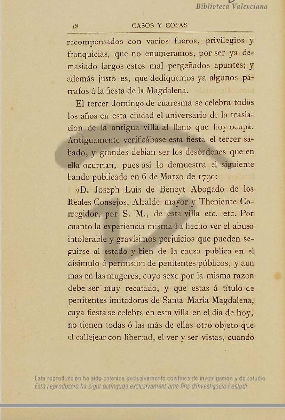 En estos documentos se observa cierta instauración de una romería penitencial para invocar ayuda tanto material como espiritual, a la ermita de Santa María Magdalena en el Castell Vell, el tercer sábado de Cuaresma: «... e així mateix fonch proposat per dit jurat que lo tercer dissabte de Quaresma acostuma la universitat fer cascun any a la hermita de Santa Magdalena una profesó de pregàries de aygua...».