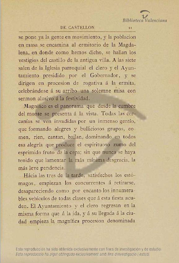 A pesar de que en el primer tercio del siglo XIX se encuentran referencias municipales considerando a la romería como «procesión de rogativa a santa María Magdalena» y que la autoridad municipal tiene presente el sentido de obligación cívica de la romería, queda manifiesta la ausencia de los ediles castellonenses en esta celebración, y durante muchos años tan solo el clero parroquial y un sector del pueblo mantuvieron el compromiso de retorno al lugar de los antepasados. No será hasta el año 1831 cuando el ayuntamiento acuerda «que para mas autenticar la función de la mañana, recordando la traslación de la población des de la hermita de la Magdalena, vaya todo el Ayuntamiento a dicha hermita».