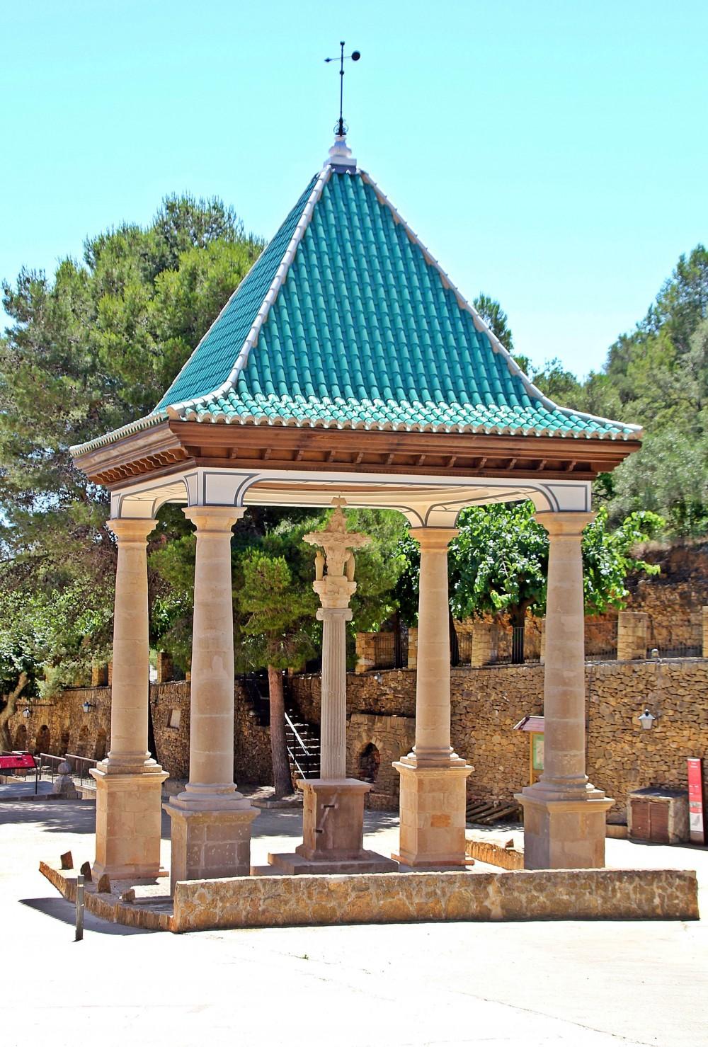 La coberta de teula vidriada d’aquet peiró va ser destruït durant la Guerra Civil i aquesta actuació ha permet recuperar tot l’esplendor d’aquet indret que dona la benvinguda al Real Santuari de la Verge de la Font de la Salut.