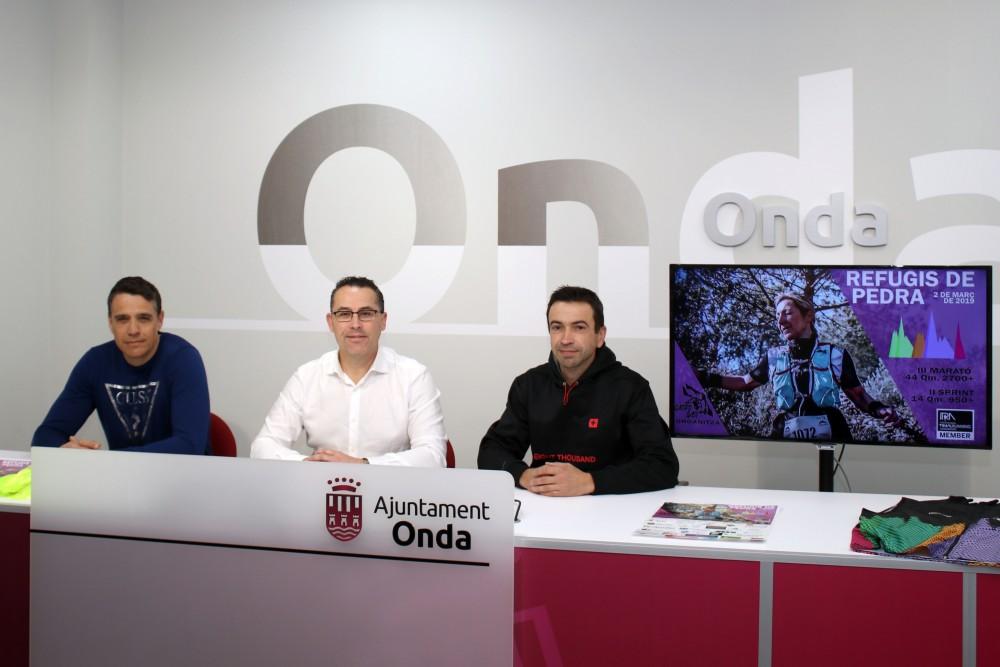 L'Ajuntament d'Onda, juntament amb el Club Campo Base, han presentat el Trail Refugis de Pedra que se celebrarà el pròxim 2 de març amb eixida a Onda i que transcorrerà per alguns dels pics més emblemàtics de la Serra d’Espadà. El regidor d'Esports del consistori onder, Francisco Chalmeta, i dos representants del club, Pedro Pallarés i Jero Martínez, han participat en aquesta presentació en la qual el regidor ha destacat que “és una carrera de muntanya que ens situa com a referent en organització d'esdeveniments esportius, ja que els participants poden obtindre dos punts de la International Trail Running Association (ITRA) que els poden servir per a participar en el campionat UTMB. A més, Onda reafirma la seua posició com a porta de la Serra d’Espadà, ja que l'eixida i meta estaran en la nostra localitat, però la prova transcorre pels termes municipals d'Onda, Tales, Suera i Benitandús, a més de per els seus nuclis urbans”.