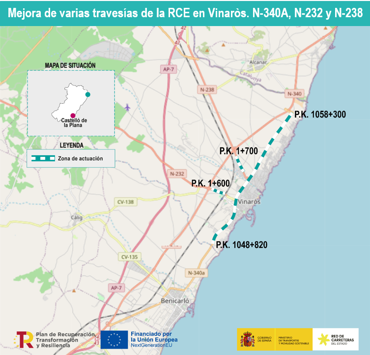 El Ministerio de Transportes y Movilidad Sostenible ha adjudicado por 6,7 millones de euros (IVA incluido) las obras para la integración urbana, rehabilitación del firme y adecuación al tránsito de peatones y bicis de las travesías de Vinaròs, en la provincia de Castellón. En concreto, se actuará sobre unos 13 kilómetros de las carreteras N-340A, N-232 y N-238, que se interconectan a su paso por el municipio.