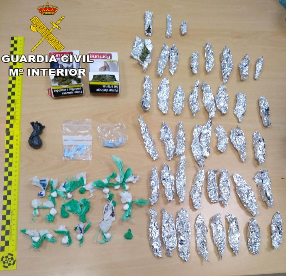 La Guardia Civil inspeccionó un vehículo y encontró mentaanfetamina, marihuana, cocaína y 280 euros en efectivo, en otro control MMA y en un tercero marihuana, hachís, éxtasis y ecgonina