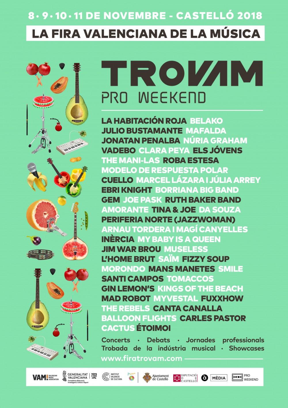 La Fira Valenciana de la Música Trovam!–Pro Weekend dóna a conèixer la programació artística completa per a la seua sisena edició. Als noms ja coneguts de La Habitación Roja, Mafalda i Jonatan Penalba o Núria Graham, entre d’altres, s’han unit artistes com Belako, Julio Bustamante i Clara Peya. Totes aquestes bandes i solistes actuaran del 8 a l’11 de novembre en diversos espais de la ciutat de Castelló com l’Auditori, el Teatre Principal, la Plaça Major i la plaça de l’Hort dels Corders.