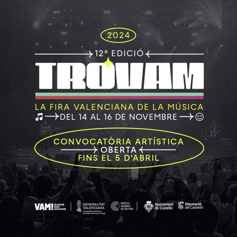 La Feria Valenciana de la Música ‘Trovam’ ha abierto el plazo de presentación de propuestas artísticas para formar parte de la programación de la edición de 2024. Esta feria, que este año alcanza su 12º edición, es el espacio de intercambio profesional más reconocido por el sector musical en la Comunitat Valenciana y se celebrará entre el jueves 14 y el sábado 16 de noviembre en Castelló.