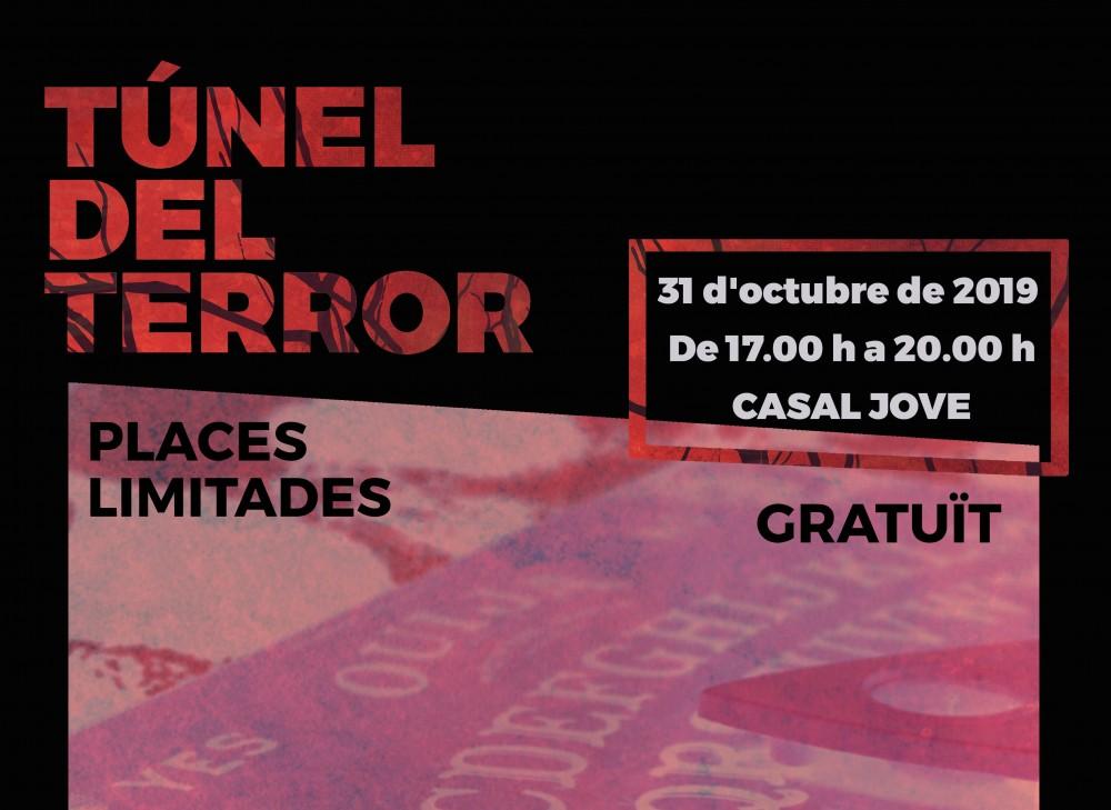 Experimentar emocions fortes i gaudir d'Halloween d'una forma diferent. És la proposta del Túnel del Terror, l'activitat gratuïta organitzada per la Regidoria de Joventut per a la vesprada d'aquest dijous, 31 d'octubre. En sessions de 10 minuts i de 17.00 a 20.00 hores, els assistents al Casal Jove hauran de resoldre un terrorífic misteri. Les places són limitades i les inscripcions continuen obertes. Poden realitzar-se acudint al Casal Jove del Grau, situat en l'Avinguda del Port. També per via telefònica telefonant al 964 282 122 o enviant un correu electrònic a juventud@castello.es. Està dirigit a joves de 12 a 35 anys, si bé poden entrar xiquets i xiquetes de 8 a 11 anys si van acompanyats d'un adult.