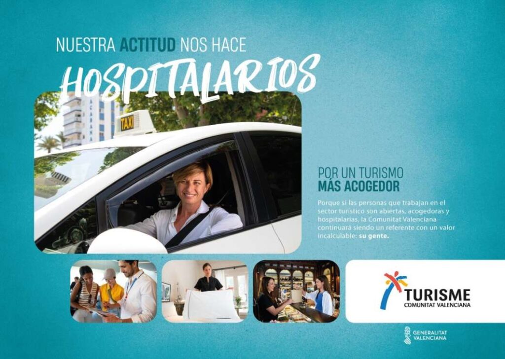 La campaña para sensibilizar a la población de Comunitat Valenciana y, en especial, a profesionales del sector turístico de la importancia de la atención, la acogida y el buen trato a las personas que disfrutan su tiempo de ocio en la Comunitat Valenciana, se emite exclusivamente en el territorio de la Comunitat Valenciana con el eslogan 'Nuestra actitud nos hace hospitalarios' desde el pasado 27 de junio.