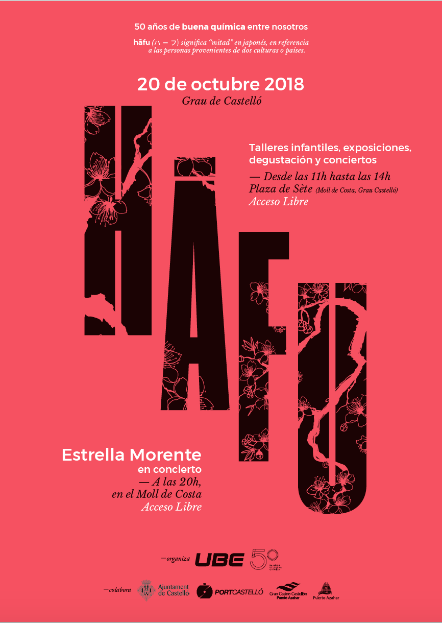 Agradecer cincuenta años de hospitalidad a la sociedad castellonense es el motor de Hāfu, el mestizo nombre que engloba a esta fiesta colectiva organizada por UBE Corporation Europe. Será el sábado, 20 de octubre, en el Grau de Castelló, y servirá para conmemorar el medio siglo transcurrido desde la construcción de la planta en la que opera la multinacional japonesa en el polígono industrial de ‘El Serrallo’.