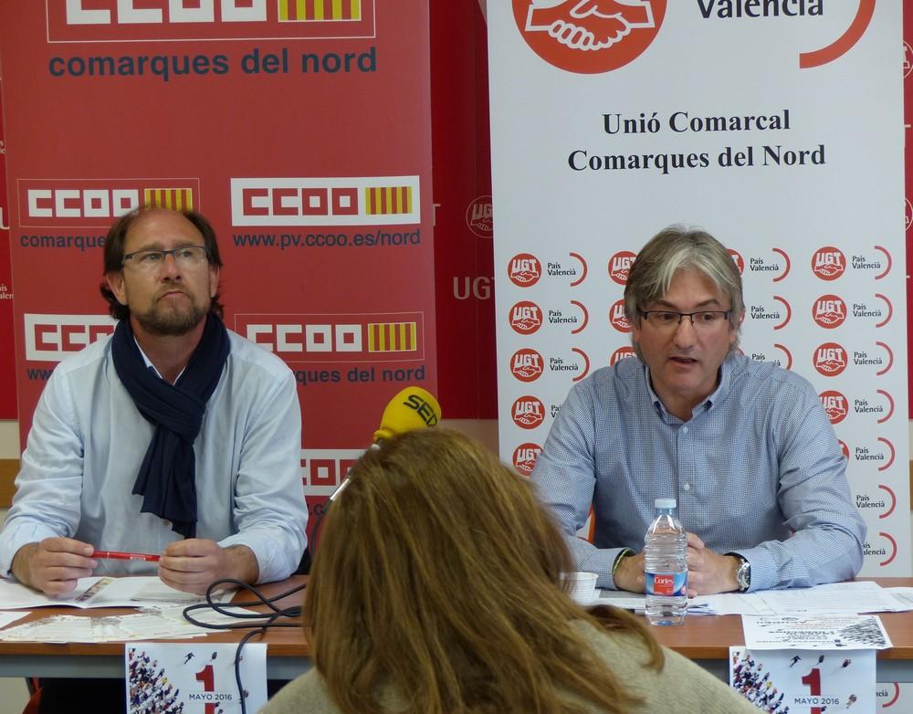 Ambos dirigentes sindicales coincidían que hoy, Día Internacional de la Seguridad y Salud en el Trabajo, día en que se han conocido también las nefastas cifras de los datos de la EPA (sólo en Castellón la tasa de paro del último trimestre alcanza un 21.43%), en que ésta rueda de prensa anuncia un 1 de Mayo cargado de motivos para pedir al próximo gobierno que de un giro, de una vez por todas, a las políticas de reformas y recortes y empiece a pensar en serio que hacer en beneficio de los más desfavorecidos.