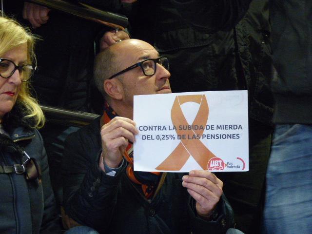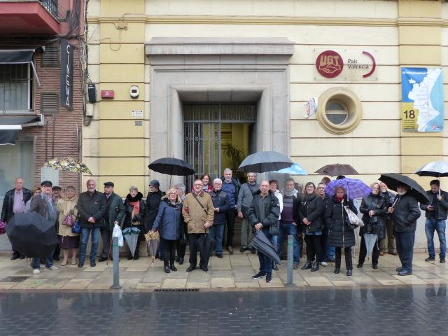 UGT PV Comarques del Nord se ha concentrado en la puerta de su sede en Castellón, para dar lectura del manifiesto en contra de la subida del Gobierno del 0.25% a los pensionistas.