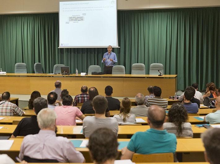 Para abrir la jornada, Héctor Beltrán, profesor del área de Ingeniería Eléctrica de la UJI, ha hecho una introducción a los sistemas de almacenamiento de energía en la que ha repasado los diferentes métodos existentes: mecánicos, electromecánicos, químicos y térmicos. En cuanto a las baterías, ha explicado que se clasificarían dentro de los métodos químicos y ha presentado las diversas tipologías: plomo ácido, que fue la primera que se inventó y que sería como la que utilizan los coches; níquel cadmio y níquel metal hidruro, que corresponde a las pilas de uso común; sodio azufre y baterías cebra, que han dado problemas por ser inestables; ion litio, más utilizadas actualmente; baterías de flujo, que funcionan con tanques de líquido; metal aire, todavía en fase de desarrollo, y pilas de combustible y tecnología de hidrógeno, que tienen la problemática del almacenamiento del hidrógeno.