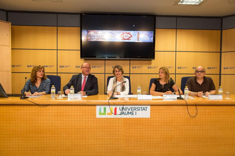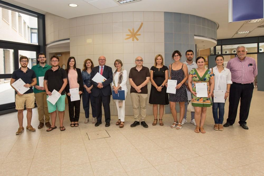 La rectora de la Universitat Jaume I, Eva Alcón, i el president del patronat de la Fundació Balaguer-Gonel Hermanos, Ernesto Tarragón, han fet lliurament de nou ajudes concedides per a cursar estudis de postgrau a l'UJI en el curs acadèmic 2017-2018. A l'acte també han assistit la vicerectora d'Estudiantat i Compromís Social, Inmaculada Rodríguez Moya; el vicerector d'Investigació i Transferència, Jesús Lancis, i la directora de l'Escola de Doctorat, Mercè Correa.