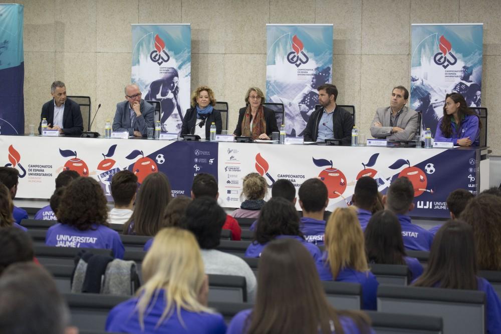 La Universitat Jaume I ha presentat els Campionats d'Espanya Universitaris que comptaran amb la participació de més de 4.200 atletes en 25 modalitats que es distribuiran entre les set universitats públiques i privades valencianes. El campus de l'UJI acollirà del 3 al 10 de maig les modalitats de futbol, atletisme i taekwondo i, com a novetat, cal destacar que per primera vegada el futbol femení es jugarà en modalitat de futbol 11.