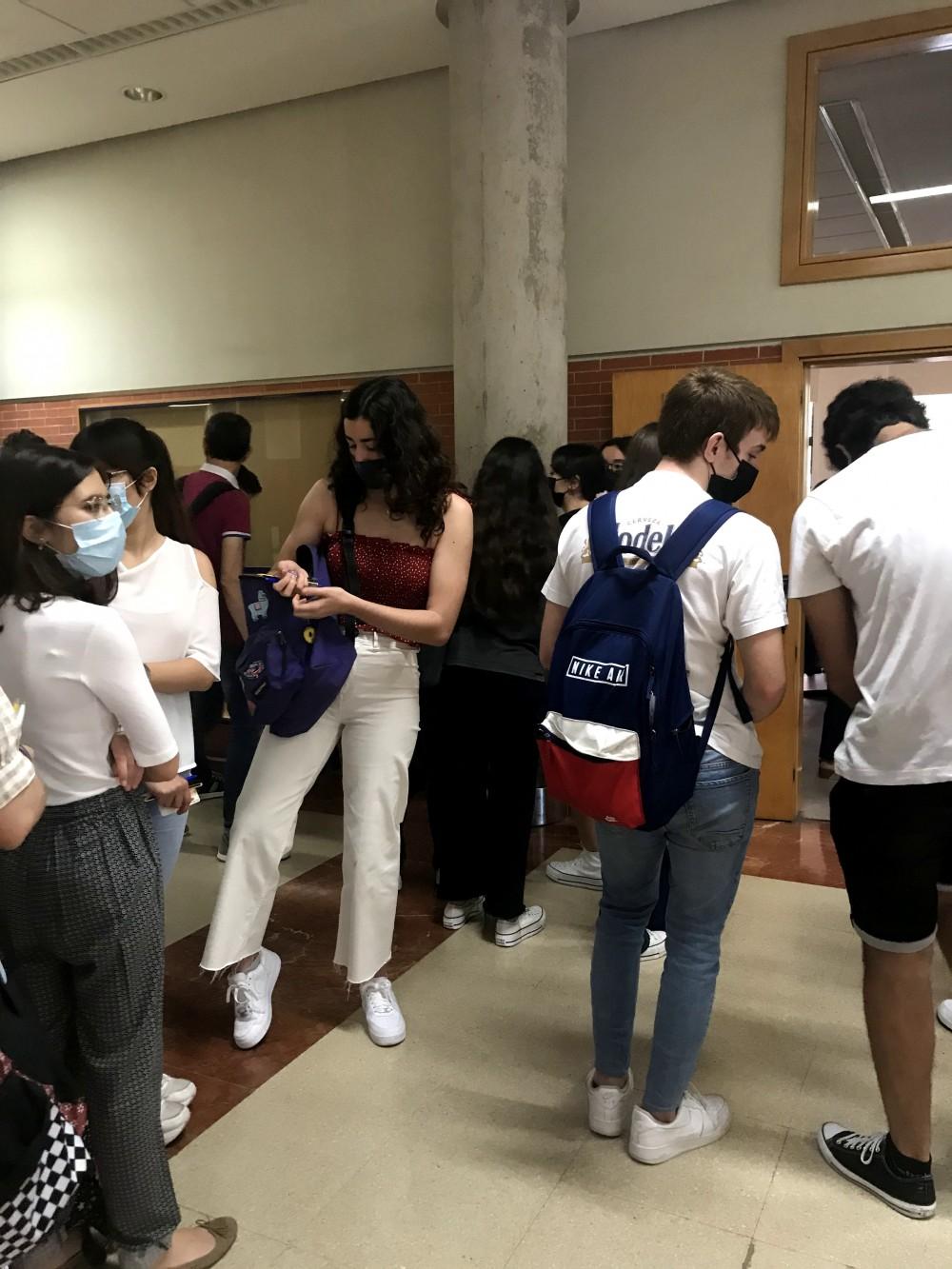 El estudiantado accedía a las aulas sobre las 8:30 horas para cumplir el nuevo protocolo adaptado a la normativa de la Covid-19. Dentro de las clases, ellos se distribuían manteniendo la distancia de seguridad y el profesorado pasaba lista para comprobar que todo estuviese en orden.