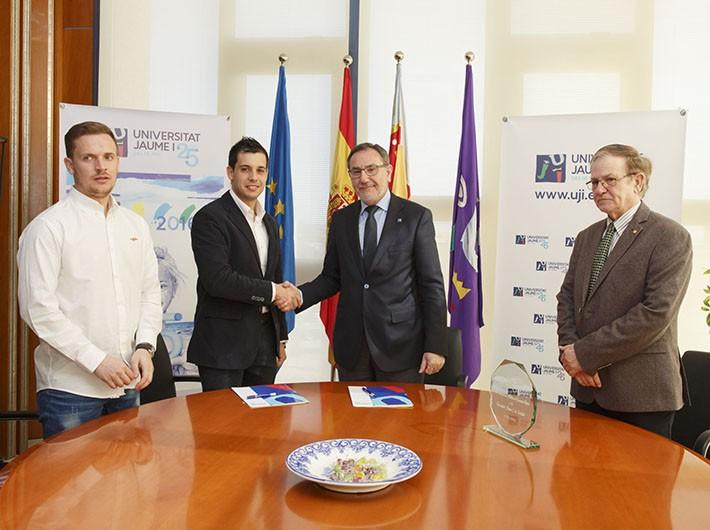 La Universitat Jaume I y la Asociación Militar de Guardias Civiles (AMGC) han firmado hoy 19 de febrero de 2016 un convenio marco de colaboración cultural, educativa, científica y formativa así como de asistencia mutua en áreas de interés común. El rector de la UJI, Vicent Climent, y el presidente de la AMGC, Alberto Baena, han sido los encargados de firmar el acuerdo, acompañados por el vicerrector de Cultura, Extensión Universitaria y Relaciones Institucionales de la UJI, Wenceslao Rambla, y el delegado de AMGC en la provincia de Castellón, Juan Ruiz Cabrera. Además, en el acto de firma la Asociación ha hecho entrega al rector de una placa conmemorativa.