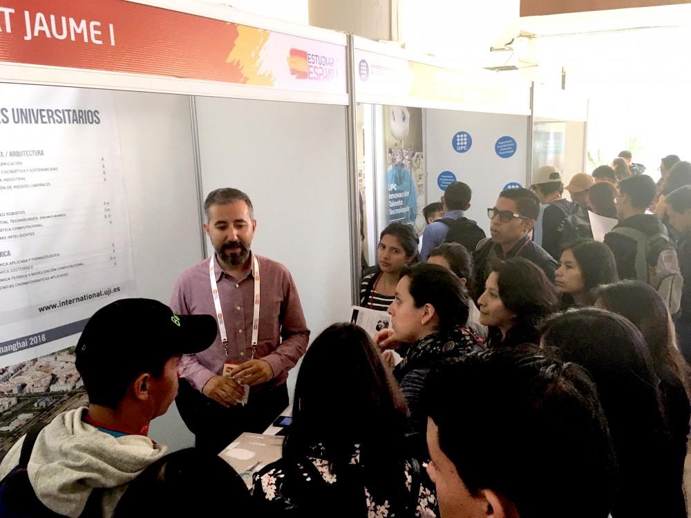 La Universitat Jaume I participa en les fires 'Estudiar en España' que se celebren aquest mes de juny a l'Equador i el Perú i estan organitzades pel Servei Espanyol per a la Internacionalització de l'Educació (SEPIE) i les ambaixades de cada país. L'objectiu d'aquestes fires és difondre la potencialitat d'Espanya i de la xarxa d'universitats i centres educatius com a destí per als estudiants internacionals.