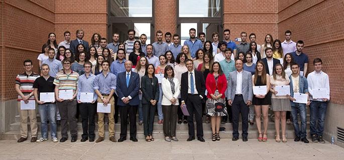 El salón de actos de la Facultad de Ciencias Jurídicas y Económicas ha acogido la entrega de los Premios a la Excelencia Académica del estudiantado de Grado del curso 2013/2014. El acto ha sido presidido por la vicerrectora de Estudiantes, Ocupación e Innovación Educativa, Pilar García Agustín, y la vicerrectora de Estudios, Isabel García Izquierdo, acompañadas por el presidente del Consejo Social, José Luis Breva, los decanos de las Facultades y el director de la Escuela.