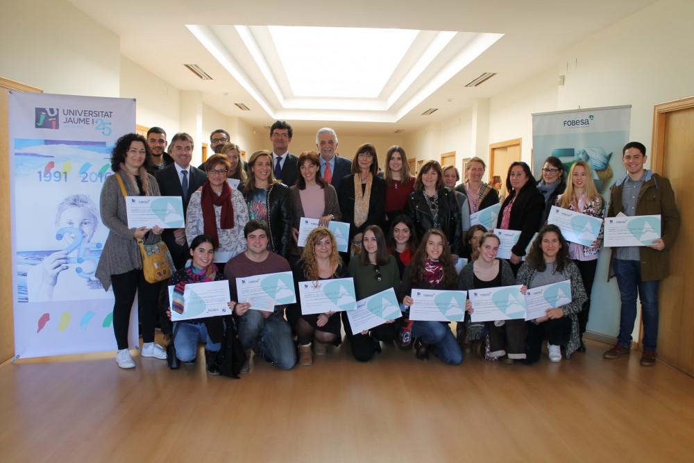 L'Ajuntament de Benicàssim ha acollit aquest matí l'acte de lliurament de les Beques Fobesa a un total de 23 estudiants de la Universitat Jaume I residents a la localitat. Les beques impulsades per l'empresa Fobesa i l'UJI volen ajudar amb el pagament de la matrícula universitària a estudiants de grau de la Universitat Jaume I residents a Benicàssim. L'acte ha comptat amb la presencia de la vicerectora d'Estudiants, Ocupació i Innovació Educativa de l'UJI, Pilar Garcia; l'alcaldessa de Benicàssim, Susana Marqués; el president de Fobesa, Enrique Gimeno, y el director de l'empresa, Juan Pablo Mateo.