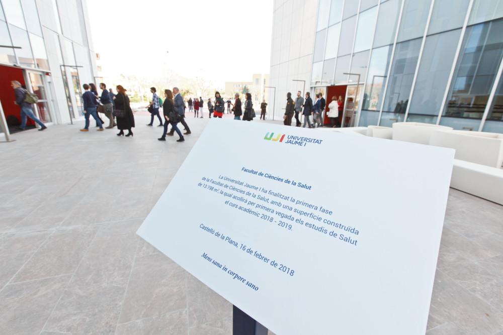 Estas declaraciones las han realizado en la inauguración de las obras de construcción de la primera fase de la Facultad de Ciencias de la Salud (FCS) de la universidad castellonense. Esta fase, que está integrada por tres de los cinco módulos que constituirán este centro, tiene una superficie construida de más de 12.000 metros cuadrados y ha supuesto una inversión de más de 21,2 millones de euros. El rector ha anunciado que el traslado de los grados de Medicina y Enfermería a este edificio se hará pronto, de forma que todas las actividades del curso 2018-2019 ya se impartirán en las nuevas instalaciones.
