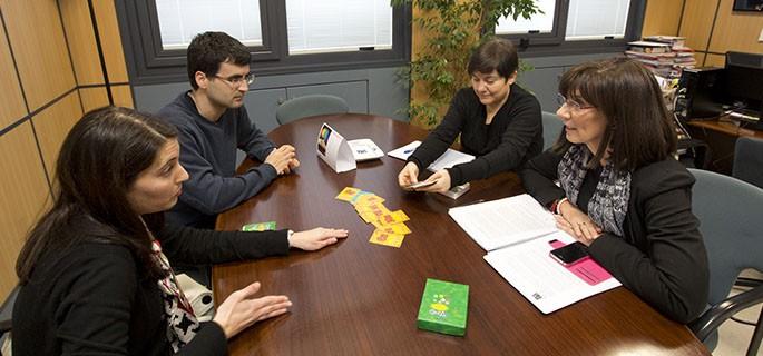 La Universitat Jaume I colaborará con los autores del proyecto ChemMend, un juego de cartas desarrollado para aprender la Tabla Periódica de forma eficiente y divertida, en su lanzamiento al mercado a través del Pla Emprèn UJI impulsado por el Vicerrectorado de Estudiantes, Ocupación e Innovación Educativa. La vicerrectora Pilar García Agustín y la subdirectora de la Cátedra Increa, María Ripollés, se han reunido con los investigadores Vicente Martí y Jenifer Rubio, autores de ChemMend, para establecer las posibles vías de colaboración.