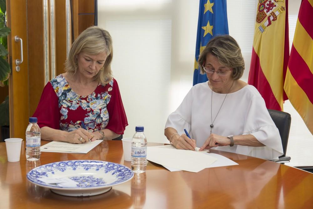 La rectora de la Universitat Jaume I, Eva Alcón, i la Consellera de Justícia, Administració Pública, Reformes Democràtiques i Llibertats Públiques, Gabriela Bravo, han signat un conveni de col·laboració per al desenvolupament durant 2018de treballs i estudis de recerca en matèria de violència sobre la dona des de la perspectiva jurídica.