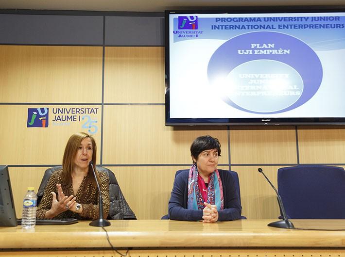 La Universitat Jaume I ha abierto la tercera edición del programa de movilidad emprendedora University Junior International Enterpreneurs, englobado dentro del proyecto 'Campus del emprendedor innovador', impulsado por las cinco universidades públicas valencianas y coordinado por la Jaume I en el marco del Plan UJI Emprén y el programa de Erasmus+ de la Unión Europea. La convocatoria, que estará abierta hasta el 29 de abril de 2016, ha sido presentada al estudiantado por la subdirectora de la Cátedra INCREA, María Ripollés, y la responsable de la Oficina de Inserción Profesional y Estancias en Prácticas de la UJI, Maribel Beas.