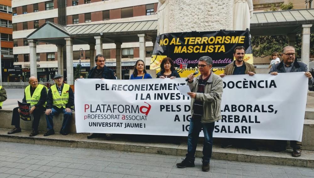 La Plataforma de Profesorado Asociado de la Universitat Jaume I se ha concentrado esta tarde en la plaza Santa Clara de Castelló para dar a conocer a la sociedad la precaria situación en la que se encuentran. Varios docentes se han reunido, junto con los iaoflautas, que se concentran todos los lunes por la tarde en esta céntrica plaza de la capital de La Plana, para leer un manifiesto denunciando las condiciones laborales que tienen los profesores asociados universitarios.