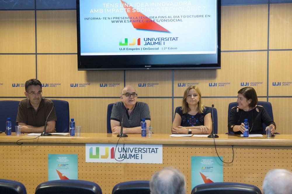 La Universitat Jaume I ha presentat la segona edició de 'UJI Emprèn OnSocial', programa que té com a objectiu promoure l'emprenedoria social i tecnològica entre comunitat universitària. Per a açò, s'oferiran sessions de formació i mentorización de projectes durant el curs acadèmic 2018-2019. Les places per a participar estan limitades a 25 i els dos projectes guanyadors podran optar a 10.000 euros en ajudes per a crear l'empresa.