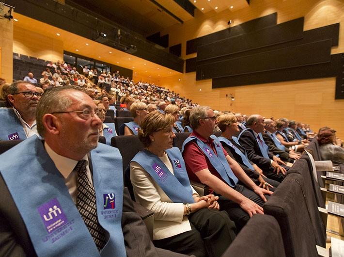 La Universitat per a Majors ha clausurado el curso académico 2015/2016 en un acto en el que se han graduado 59 estudiantes: 44 de grado y 15 de posgrado. El acto, que ha tenido lugar en el Paraninfo de la UJI, ha estado presidido por la vicerrectora de Estudios, Isabel García, acompañada por la directora académica de la Universidad para Mayores, Elsa González; el director honorífic, Salvador Cabedo y la coordinadora académica de este programa, Pilar Escuder. El profesor del área en Derecho del Trabajo y de la Seguridad Social, Fernando Vicente, ha sido el encargado de impartir la lección de clausura, con el título 'Violencia digital, privacitat y derecho'.