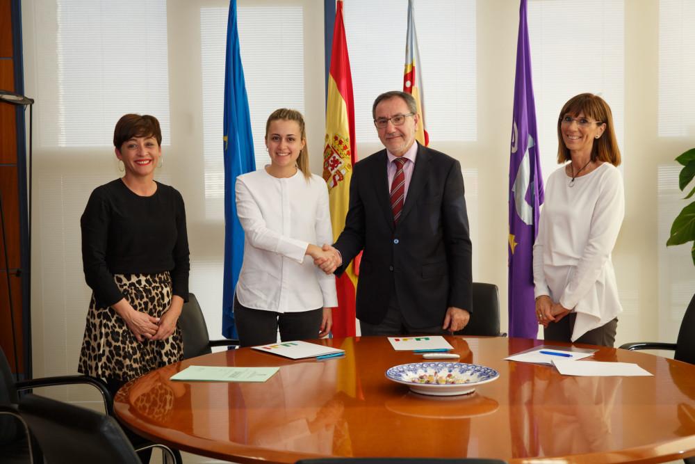 El rector de la Universitat Jaume I, Vicent Climent, i l'alcaldessa de la Vall d'Uixó, Tania Baños, han signat avui un conveni de col·laboració per a donar suport a la iniciativa 'La Vall Innova' per al desenvolupament d'accions formatives i de recerca vinculades al professorat i alumnat del Departament d'Educació durant el curs 2017/2018.