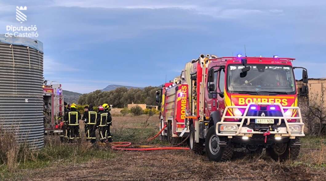 Cuatro dotaciones de bomberos de la Diputación de Castellón, del parque del Baix Maestrat, así como una unidad de mando, están trabajando en Vinaròs en un incendio en una nave de una explotación ganadera en el municipio de Vinaròs.