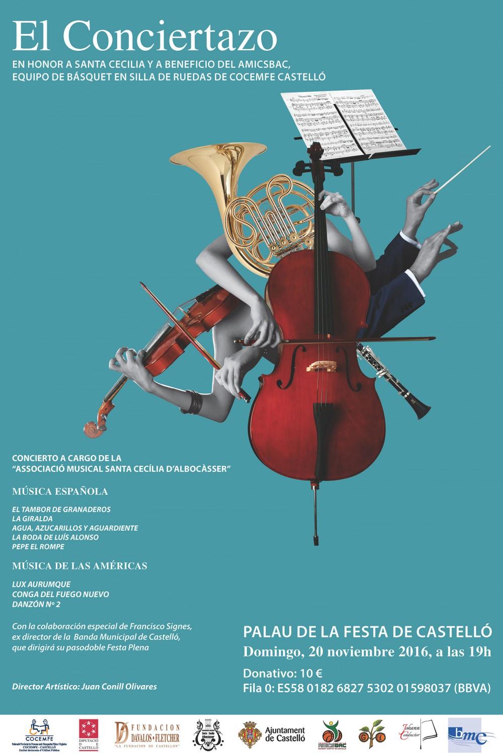 Con el objetivo de solidarizarse con las personas con discapacidad de la provincia, l'Associació Musical Santa Cecília d'Albocàsser ofrecerá un concierto solidario a beneficio de COCEMFE Castelló cuya recaudación destinará esta ONG a su equipo de básket adaptado (AmicsBAC), con el objetivo de adquirir las sillas de ruedas necesarias para la práctica de este deporte.
