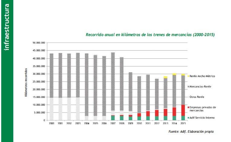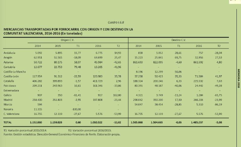 Un estudio realizado por el Observatorio del Tren, que analizaba el volumen de movimiento del transporte de mercancías por ferrocarril en España, demostraba que este tipo de transporte que está en auge en toda Europa, no solo no se ha incrementado en España, sino que ha tenido un decrecimiento constante, hasta el punto, de que en 2015 el tráfico de mercancías por tren era inferior al registrado en el año 2000. Son las mismas conclusiones que aportaba el Informe del Consejo Económico y Social de 2016 en el que señalaba además, que la Comunitat Valenciana había rebajado sus cifras de trasporte de mercancías por ferrocarril.