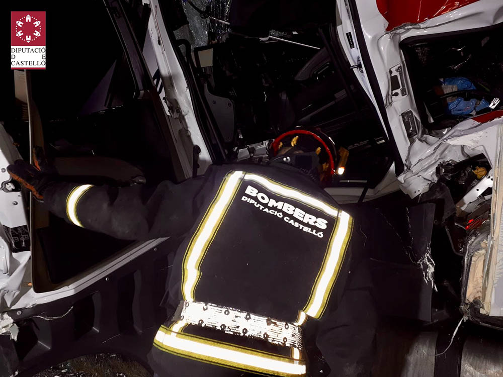 Sobre las 22 horas de ayer, se producía un accidente de tráfico entre dos camiones en la AP-7, en término municipal de Alcalà de Xivert.