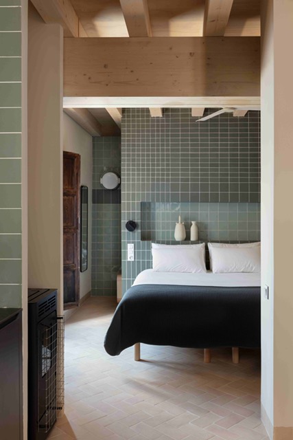 La piezas de cerámica verde y terracota dominan en el interior, combinando dos colecciones de Wow Designeu con diferentes formatos en acabado mate y brillo para conseguir efecto de profundidad, colocando las piezas mate en el primer plano y las brillantes en el interior de aseos, de hornacinas, el frente de cocina…