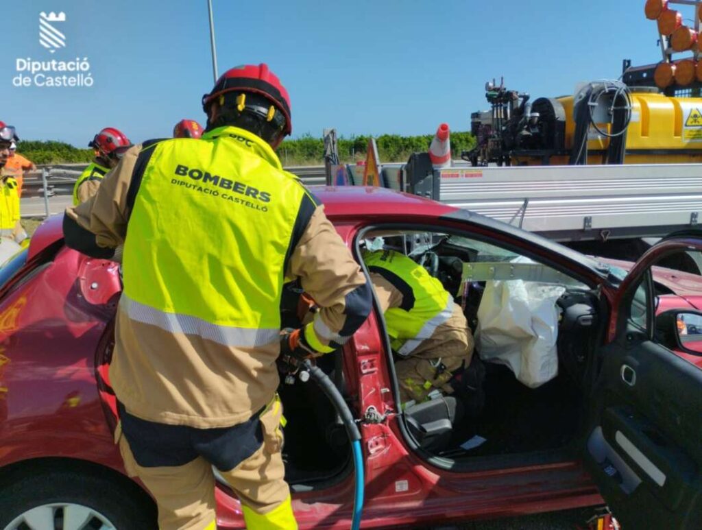 El Consorcio Provincial de Bomberos ha intervenido en el rescate del conductor del interior del turismo. El equipo sanitario lo ha asistido y trasladado al hospital La Plana de Vila-real, en la ambulancia de soporte vital básico, según fuentes del CICU. Presentaba traumatismo craneoencefálico y una herida en un brazo.