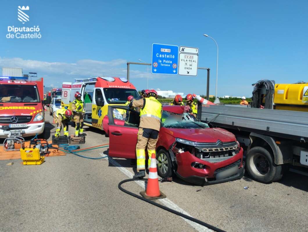 Un joven de 22 años ha resultado herido en la tarde de este miércoles en un accidente de tráfico en la CV10 entre Betxí y Onda en dirección València, con un coche y un camión implicados.
