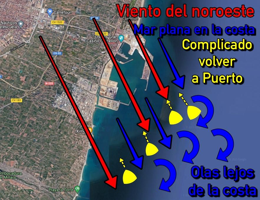 Pero, después de tantos días de lluvia ¿quién podía resistirse a salir al mar?. El viento de noroeste aplana el mar, no hay oleaje y, si encima brilla el sol, la tentación a veces es irresistible, ¡pero es una trampa!. A medida que el navegante se adentra en el mar, se levanta la ola, la embarcación corre el riesgo de zozobrar o de verse arrastrada mar adentro. Y la posibilidad de retornar a puerto es cada vez más complicada porque la nave recibe el viento en la proa.