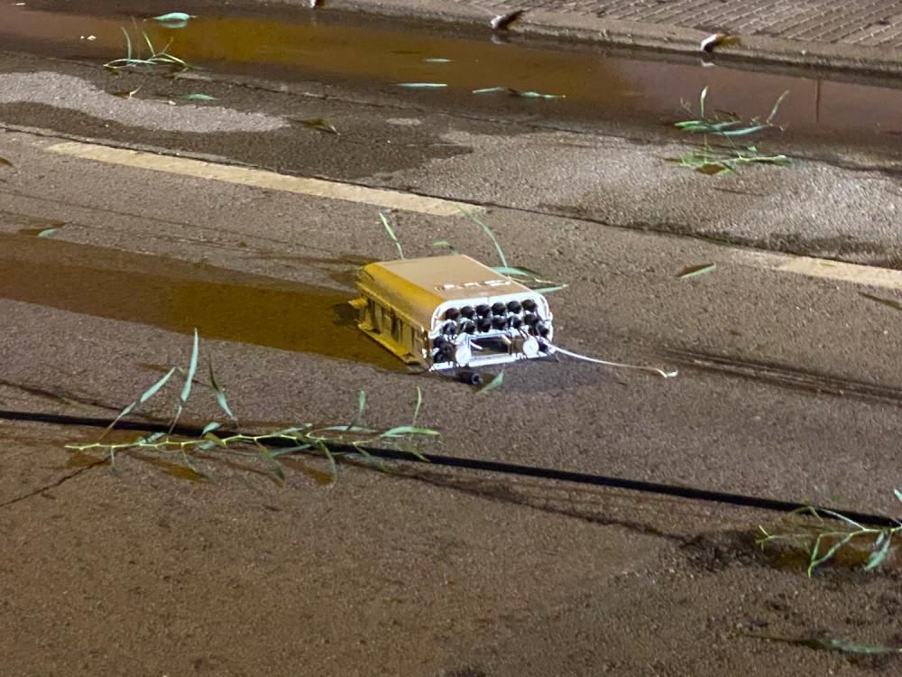 Un camión engancha un cable destensado en la Gran Avenida y arrastra varios pilares de la línea telefónica